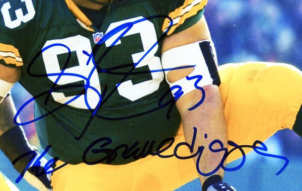 A Green Bay Packers Unframed 8x10 Leg Up Photo hand signed by Gilbert Brown. The item and signature are in excellent condition. In addition to signing his name, Gilbert signed "The Gravedigger" on the item. Gilbert is a former football nose tackle. He spent his career with the Green Bay Packers & is a XXXI Super Bowl Champ. AUTHENTICATION: Your item has been tagged with a SmarTag powered by Prova Technology, which gives you digital access to your items authentication records.