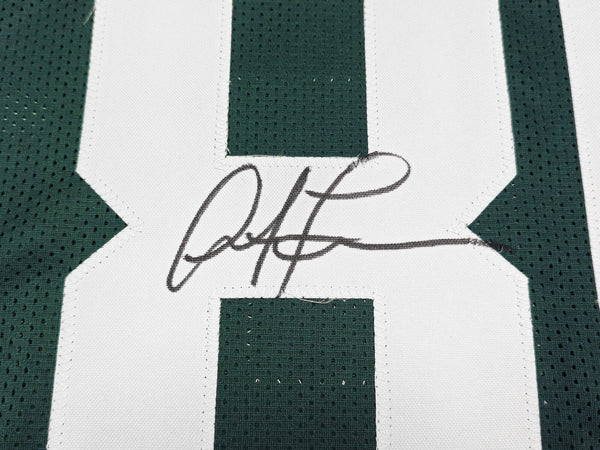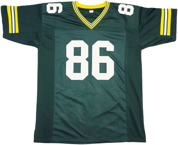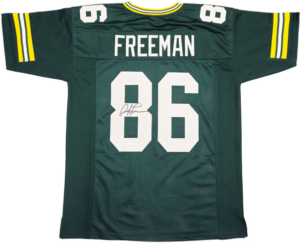 This is a Green Jersey that has been hand signed by Antonio Freeman. This is a custom jersey with no name brand. The approximate size is XL. It has nice sewn in name and numbers. This item has been certified authentic by JSA and comes with their tamper-proof hologram and matching certificate of authenticity.