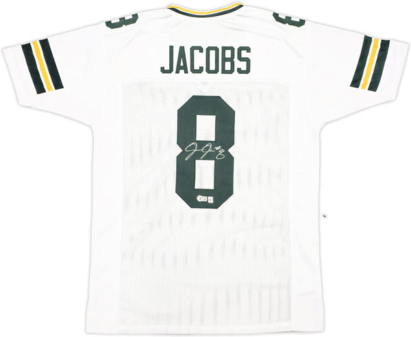 GREEN BAY PACKERS JOSH JACOBS AUTOGRAPHED WHITE JERSEY BECKETT WITNESS 229522
