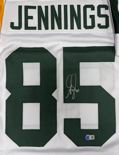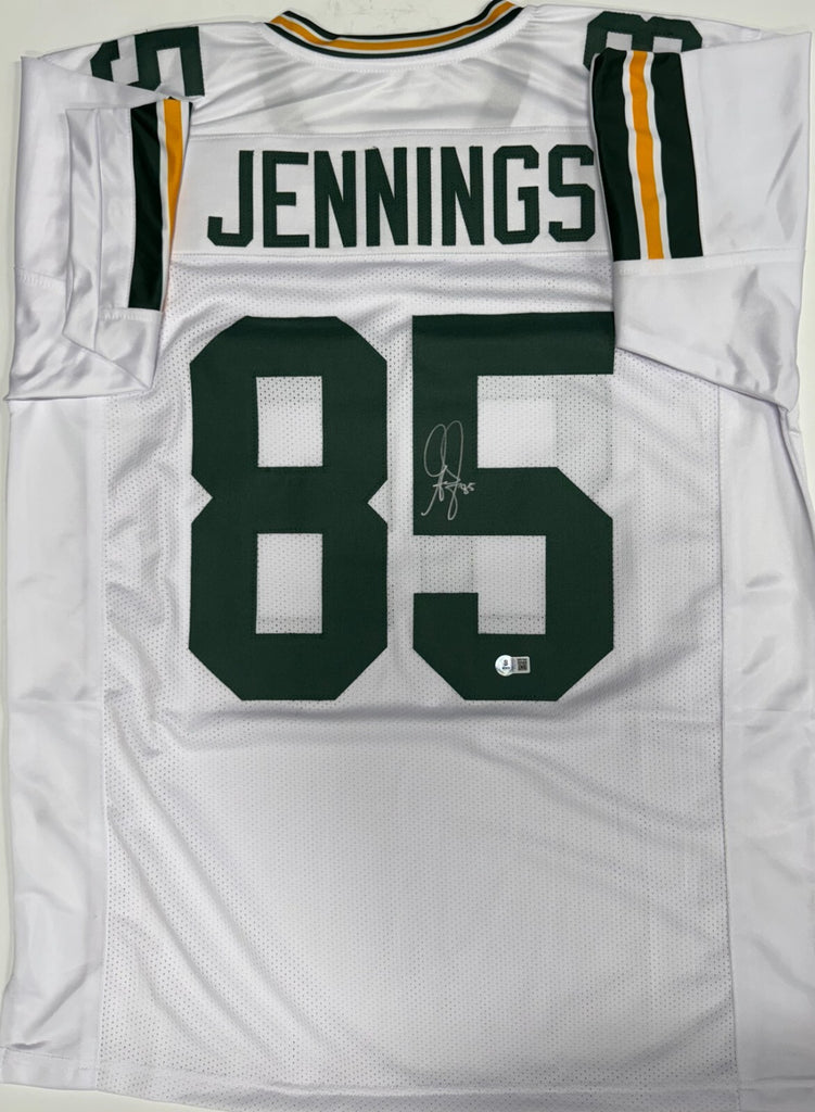 Custom Replica Jersey hand signed by Green Bay Packers Super Bowl XLV Champ JORDY NELSON. The signature is in Silver Paint pen. This jersey was signed at a private signing with us and would make a great addition to any Packers collection! The jersey size is XL and all letters and numbers are sewn in. This autograph is guaranteed to be 100% authentic and will include a COA from Beckett Authentication.