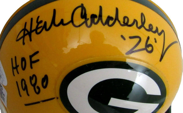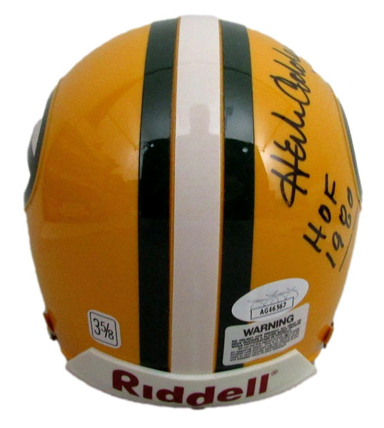 Herb Adderley HOF Autographed/Inscribed "HOF 1980" Gold Mini Football Helmet Green Bay Packers. This helmet is authenticated by JSA and includes their Tamper-proof Sticker and Certificate of Authenticity.