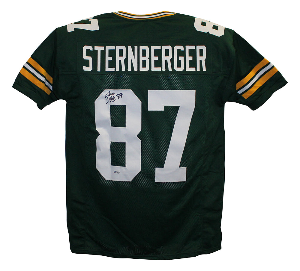 Jace Sternberger Autographed/Signed Green Bay Packers Green XL Jersey JSA 25013 This is a custom size XL green jersey with sewn on name and numbers that was personally autographed by Jace Sternberger. This jersey includes a certificate of authenticity from James Spence Authentication (JSA) and Denver Autographs.
