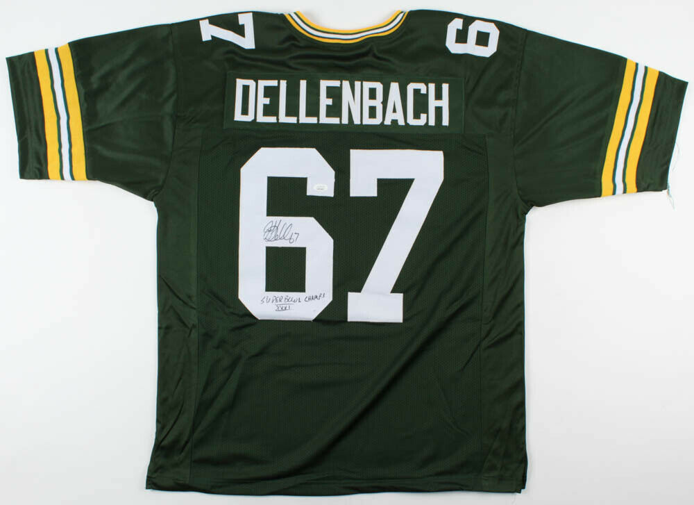Custom on-field style jersey. Everything sewn on, size XL. Hand-signed in black felt-tip pen by Jeff Dellenbach. The lot / autograph(s) includes an official James Spence Authentication (JSA) hologram and matching COA for authenticity purposes. The signing of this item was witnessed by JSA.Authentication: JSA COA