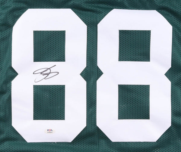Custom on-field style jersey. Everything sewn on, size XL. Hand-signed by Jermichael Finley.The lot / autograph(s) includes an official Professional Sports Authenticator (PSA) hologram and matching COA for authenticity purposes. The signing of this item was witnessed by PSA.Authentication: PSA COA