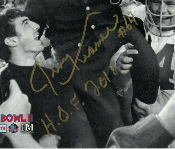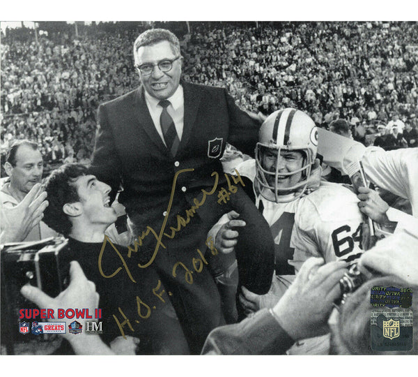 A Green Bay Packers Unframed 8x10 NFL Photo - Lombardi & Players hand signed by Jerry Kramer. The item and signature are in excellent condition. In addition to signing his name, Jerry inscribed "HOF 2018" on the item. Jerry is a 2x Super Bowl Champion, 5x NFL Champion, 3x Pro Bowler, and is in the Green Bay Packers Hall of Fame. AUTHENTICATION: The item is accompanied with a Jerry Kramer Exclusive Certificate of Authenticity - Jerry Kramer Exclusive Serial Numbered and Databased Hologram - Picture of Jerry from the Signing