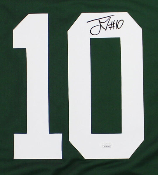 A Green Bay Packers Nike Game Green NFL Jersey hand signed by Jordan Love. The item and signature are in excellent condition. Jordan is a football quarterback for the Green Bay Packers drafted in the 2020 NFL Draft. AUTHENTICATION: The item has been tagged with a SmarTag powered by Prova Technology, which gives you digital access to the items authentication records, including a proof picture from the signing.