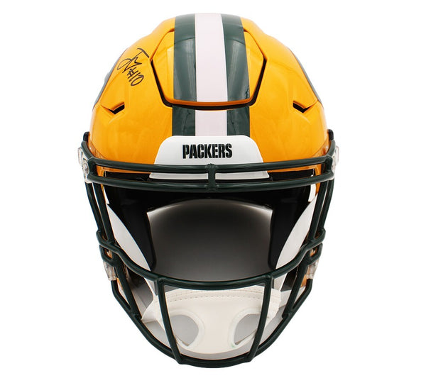 A Green Bay Packers Speed Flex Authentic NFL Helmet hand signed by Jordan Love. The item and signature are in excellent condition. Jordan is a football quarterback for the Green Bay Packers drafted in the 2020 NFL Draft. AUTHENTICATION: Your item is tagged with a SmarTag Powered by Prova Technology, which gives you digital access to your items authentication records, including a proof picture from the signing.