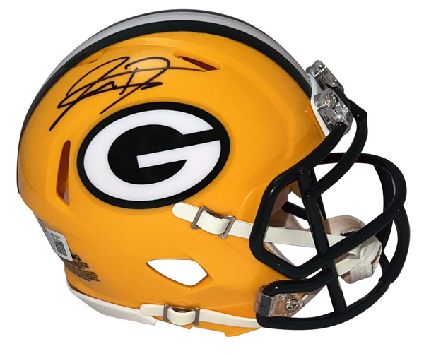 Josiah Deguara, tight end for the Green Bay Packers, has hand signed this Packers Riddell Speed mini helmet at a private signing. This item is authenticated by Beckett Authentication Services and was signed in the presence of one of their representatives. Their tamper-evident hologram featuring a QR code and serial number is on the item. The authenticity can be verified online by entering the serial number or scanning the QR code.Item pictured may not be the exact item you will receive. It will be similar quality, and we guarantee your satisfaction.