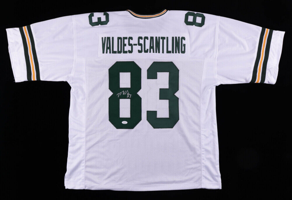 Marquez Valdes-Scantling Signed/Autographed Green Bay Packers Custom White Football Jersey Size XL. This jersey is authenticated by JSA and includes their Tamper-proof Sticker and Certificate of Authenticity.