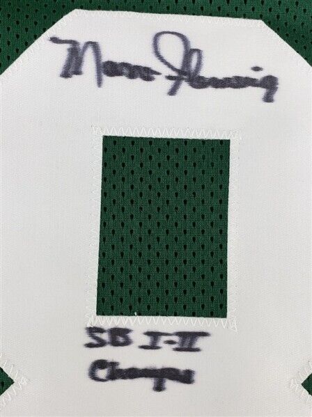 Custom on-field style jersey. Everything is sewn on, size XL. Hand-signed and inscribed in black felt-tip pen by Marv Fleming. The lot / autograph(s) includes an official James Spence Authentication (JSA) hologram and matching COA for authenticity purposes. The signing of this item was witnessed by JSA.Authentication: JSA COA