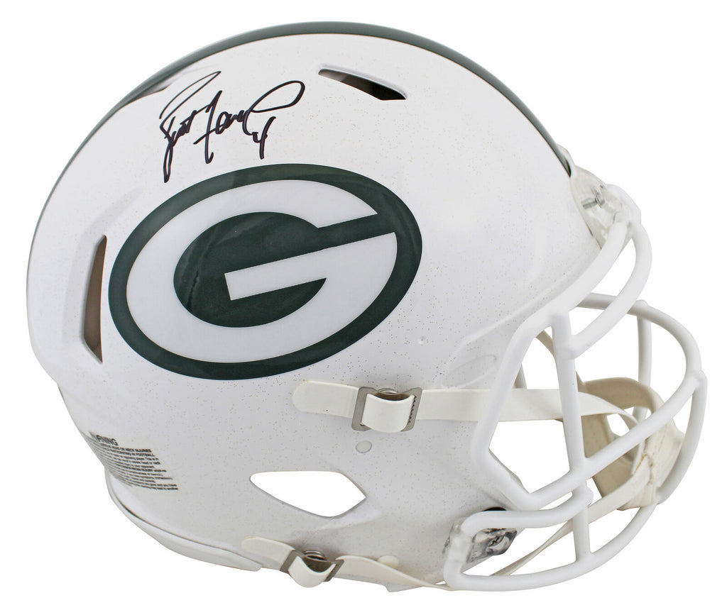 This Autographed 2024 An-Field Alternate Riddell Authentic Full Size Speed Proline Helmet has been Personally Signed by Brett Favre of the Green Bay Packers. This item is 100% Authentic to include a hologram by Beckett Authentication Services. This item will come with an affixed Beckett Authentication Services (BAS) authentication sticker, which includes a scannable QR code to verify authenticity. Please note that Beckett no longer provides serial-numbered COA cards, and the attached BAS sticker will serve as the complete authentication for this item. This is a BAS Witnessed Protection Program item which means a Beckett Authentication Service representative was present when this item was being signed. We conducted an autograph signing with Brett Favre where multiples of the same item were signed. While the photographs are representative of this item, the size, placement and strength of the signature may vary. Each item is hand signed, therefore, each autograph is unique. This item can be verified through BAS Witnessed.