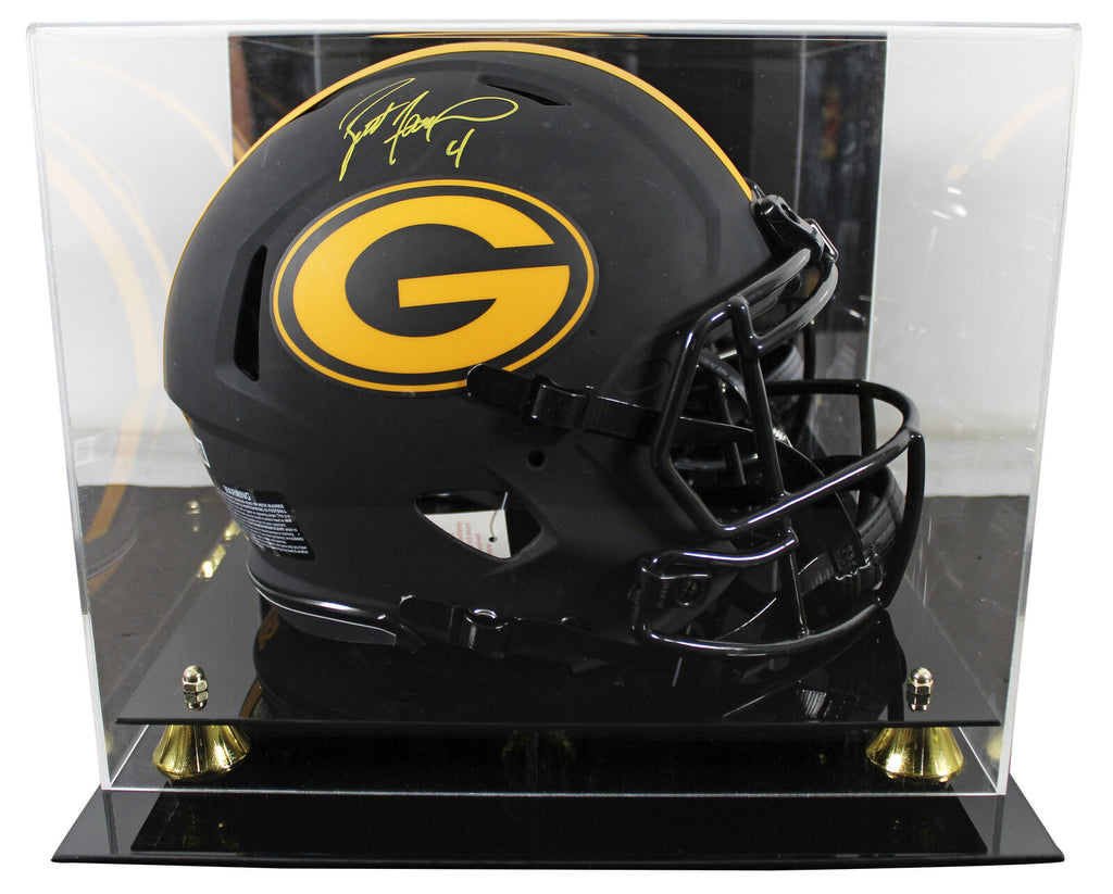 This Autographed Alternate Eclipse Riddell Full Size Speed Proline Helmet W/ Uv Mirrored Back Acrylic Display Case has been Personally Signed by Brett Favre of the Green Bay Packers. This item is 100% Authentic to include a hologram by Beckett Authentication Services. This item will come with an affixed Beckett Authentication Services (BAS) authentication sticker, which includes a scannable QR code to verify authenticity. Please note that Beckett no longer provides serial-numbered COA cards, and the attached BAS sticker will serve as the complete authentication for this item. This is a BAS Witnessed Protection Program item which means a Beckett Authentication Service representative was present when this item was being signed. We conducted an autograph signing with Brett Favre where multiples of the same item were signed. While the photographs are representative of this item, the size, placement and strength of the signature may vary. Each item is hand signed, therefore, each autograph is unique. This item can be verified through BAS Witnessed.