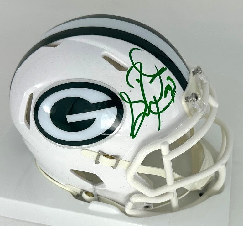 Riddell Packers ALTERNATE WHITE OUT Speed mini helmet hand signed by Packers Super Bowl XXXI Champ GILBERT BROWN. The signature is in green paint pen. This item was signed at a private signing with us and would make a great addition to any Packers collection! This autograph is guaranteed to be 100% authentic and will include a COA hologram from Beckett Authentication.