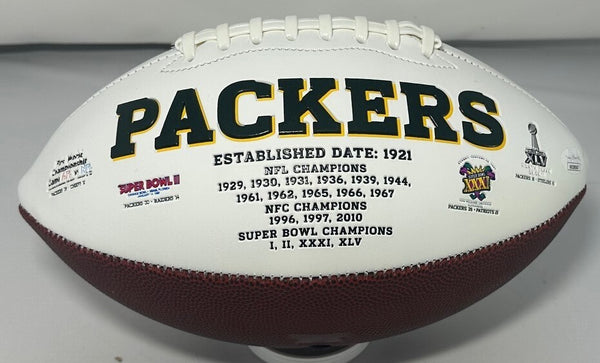 Wilson full size White Panel Packers Logo Football hand signed by Green Bay Packers Super Bowl XLV Champ NICK COLLINS. The signature is in Black paint pen and includes the inscription "SB XLV Champs". This item was signed at a private signing with us and would make a great addition to any Packers collection. This item comes with JSA authentication.