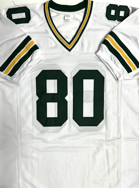 Custom Replica jersey hand signed by Green Bay Packers Receiver BO MELTON. The signature is in Silver Paint Pen. This jersey was signed at a private signing with us and would make a great addition to any Packers collection! The jersey size is XL and all letters and numbers are sewn in.This autograph is guaranteed to be 100% authentic and will include a COA hologram from JSA (James Spence Authentication).