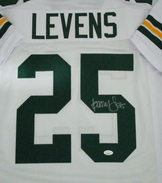 Custom Replica hand signed Jersey by Green Bay Packers Super Bowl XXXI Champ DORSEY LEVENS. The signature is in Silver Paint Pen. The jersey is size XL and has all letters and numbers sewn on. This item was signed at a private signing with us and would make a great addition to any Packers collection! This autograph is guaranteed to be 100% authentic and will include a COA from JSA Authentication.