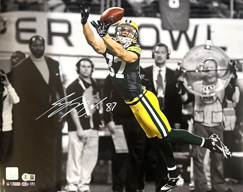 A 16x20 hand signed photo of Green Bay Packers Wide Receiver JORDY NELSON. The signature is in White paint pen. This photo was signed at a private signing with us and would make a great addition to any Packers collection. This item is guaranteed to be 100% authentic and will include a COA hologram from Beckett authentication.