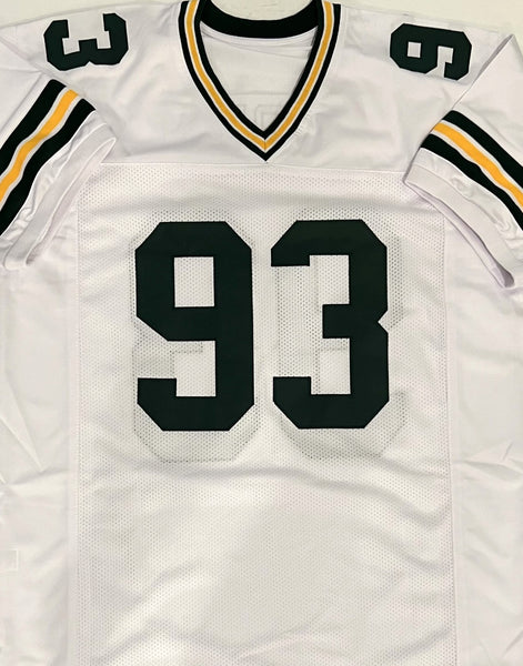 Custom Replica jersey hand signed by Green Bay Packers Super Bowl XXXI Champ GILBERT BROWN. The signature is in Silver Paint Pen. This jersey was signed at a private signing with us and would make a great addition to any Packers collection! The jersey size is XL and all letters and numbers are sewn in. This autograph is guaranteed to be 100% authentic and will include a COA hologram from Beckett Authentication.