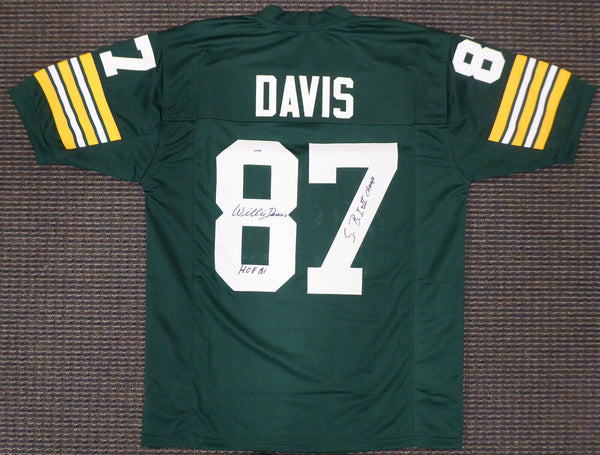 PACKERS WILLIE DAVIS AUTOGRAPHED GREEN JERSEY "HOF 81 SB CHAMPS" PSA/DNA 187484