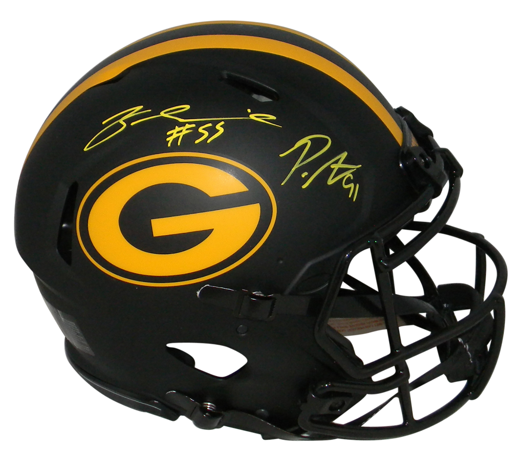 Preston and Za'Darius Smith, star linebackers for the Green Bay Packers, have each hand signed this Packers Riddell Speed Eclipse full-size authentic helmet at a private signing. This helmet is fully padded inside like the ones worn on the field. This item comes with a certificate of authenticity (COA) from Beckett Authentication Services and was signed in the presence of one of their representatives. You will receive a serial-numbered COA along with a matching serial-numbered sticker on the helmet. The authenticity can be verified online by entering the serial number.Item pictured may not be the exact item you will receive. It will be similar quality, and we guarantee your satisfaction.