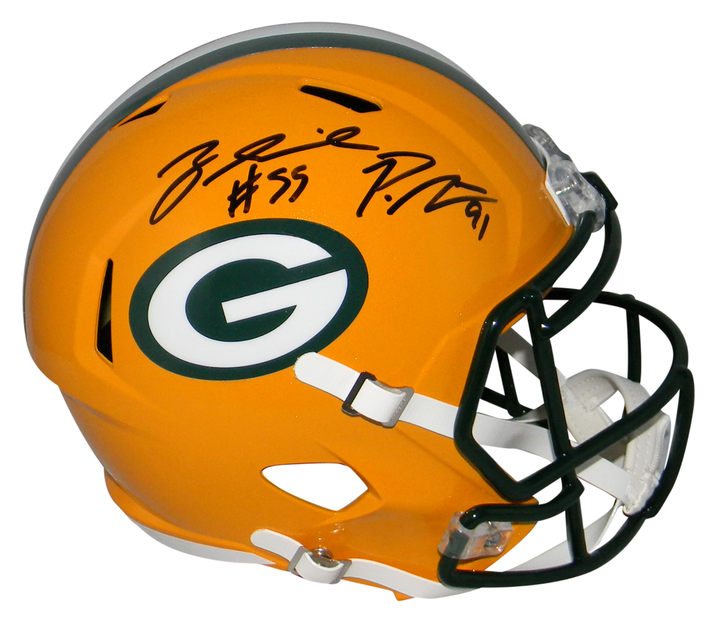 Preston and Za'Darius Smith, star linebackers for the Green Bay Packers, have each hand signed this Packers Riddell Speed full-size replica helmet at a private signing. This item comes with a certificate of authenticity (COA) from Beckett Authentication Services and was signed in the presence of one of their representatives. You will receive a serial-numbered COA along with a matching serial-numbered sticker on the helmet. The authenticity can be verified online by entering the serial number.Item pictured may not be the exact item you will receive. It will be similar quality, and we guarantee your satisfaction.