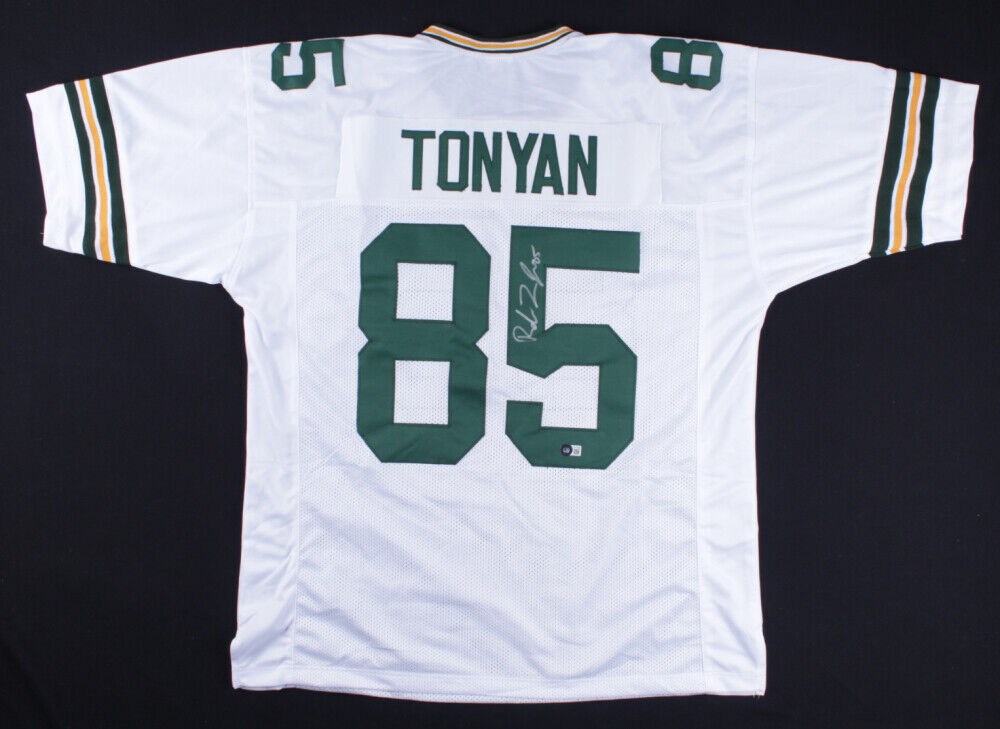 Robert Tonyan Signed/Autographed Green Bay Packers Custom White Football Jersey Size XL. This jersey is authenticated by BAS/Beckett and includes their Tamper-proof Hologram.