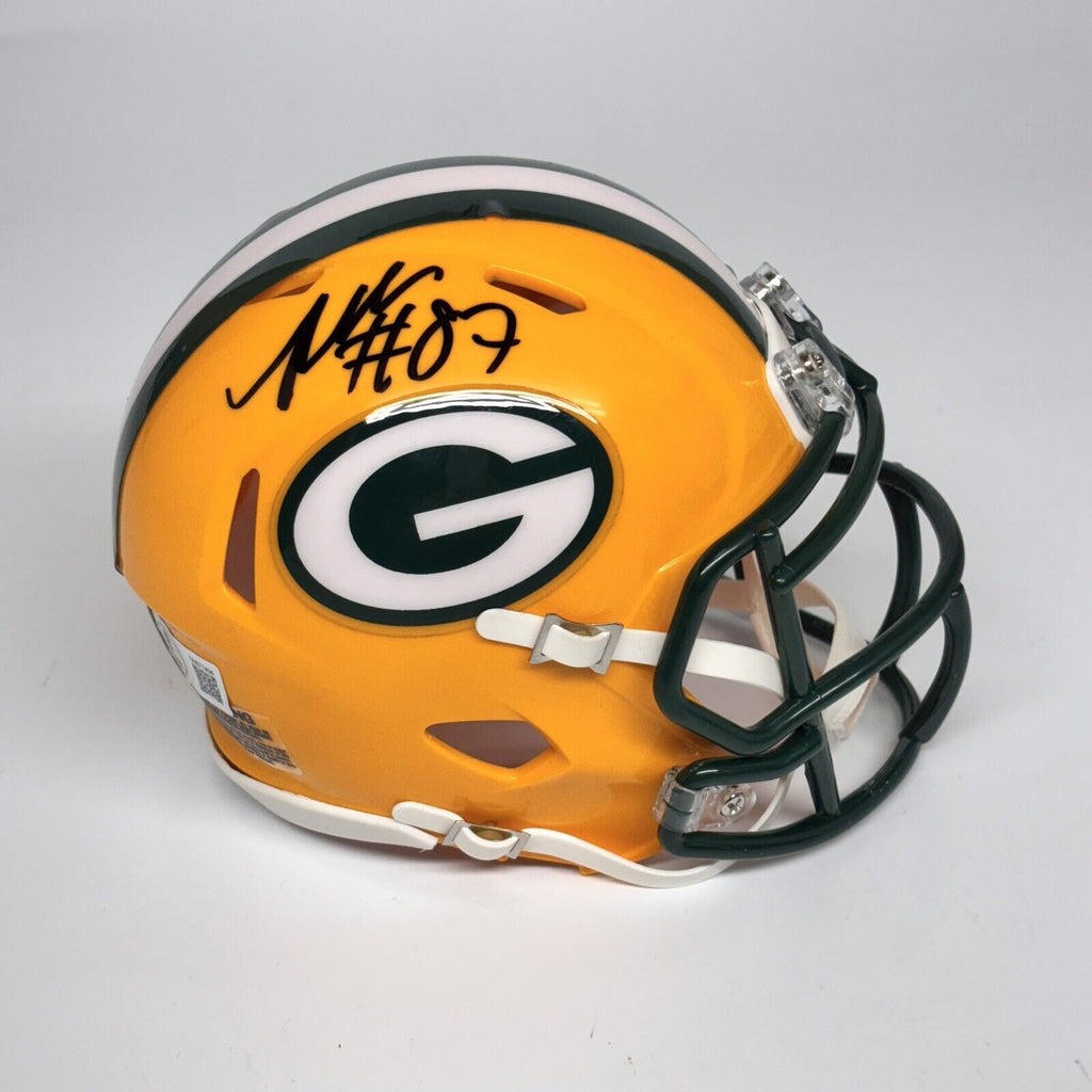 This signed item is brand new in box. This item will make a great gift or a great addition to any collection at an AFFORDABLE PRICE! ATHLETE: Romeo Doubs ITEM: Green Bay Packers Mini Helmet AUTHENTICATION: This item comes with a Beckett serial #'ed hologram affixed to the item. To ensure authenticity, the hologram can be reviewed online. This process helps to ensure that the product purchased is authentic and eliminates any possibility of duplication or fraud. This item was signed in the presence of a Beckett representative.