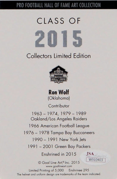 This is a hand autographed Goal Line of Ron Wolf of the Green Bay Packers. This item has a James Spence Authentication, which comes with a JSA numbered sticker and a matching JSA COA. You can view this item on the SpenceLOA website. It was signed either at a public autograph appearance or a Private Signing. This is a stock photo of the item. Although you may not receive this exact item, the item you receive is virtually identical and brand new in great shape. This is a hand autographed Goal Line of Ron Wolf of the Green Bay Packers. This item has a James Spence Authentication, which comes with a JSA numbered sticker and a matching JSA COA. You can view this item on the SpenceLOA website. It was signed either at a public autograph appearance or a Private Signing. This is a stock photo of the item. Although you may not receive this exact item, the item you receive is virtually identical and brand new in great shape.