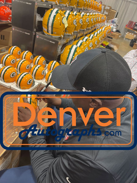 The number in the listing title is just an inventory sku for our records and is not the authentication number. The item pictured is a stock photo unless otherwise noted. This is a Green Bay Packers VSR4 Mini Helmet that was personally autographed by Sterling Sharpe includes "HOF" inscription. Includes a certificate of authenticity from Beckett Authentication Services (BAS) and Denver Autographs.FREE SHIPPING within the USA on orders over $10!