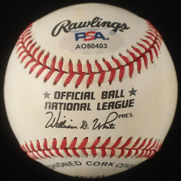 Rawlings Official National League baseball. Hand-signed by Greg Maddux. Display case included as shown. (Chicago Cubs, Atlanta Braves, HOF). Please note, baseball is naturally toning.The autograph(s) includes an official PSA/DNA hologram and QR Code card for authenticity purposes.Authentication: PSA QR Code card