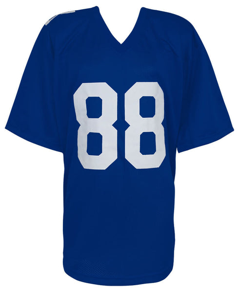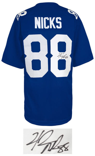 Hakeem Nicks signed blue custom football jersey. Jersey has sewn on name and numbers and is size adult X-Large. Item comes with a Schwartz Sports Memorabilia tamper-proof numbered hologram and Certificate of Authenticity which can be verified online.