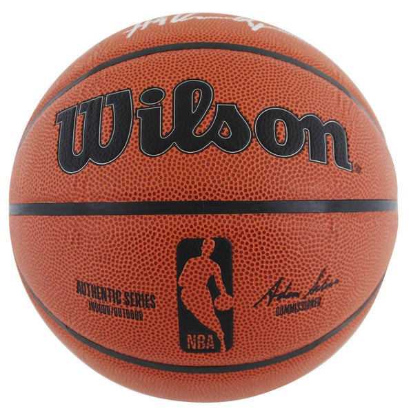 This Autographed Wilson NBA Authentic Series Basketball has been Personally Signed by Hakeem Olajuwon of the Houston Rockets. This item is 100% Authentic to include a hologram by Beckett Authentication Services. This item may come with the new Beckett Authentication hologram that has a scannable QR code rather than the traditional COA. If you would like to have a COA, you are welcome to reach out to Beckett for a printed certification once you receive your item. This is a BAS Witnessed Protection Program item which means a Beckett Authentication Service representative was present when this item was being signed. We conducted an autograph signing with Hakeem Olajuwon where multiples of the same item were signed. While the photographs are representative of this item, the size, placement and strength of the signature may vary. Each item is hand signed, therefore, each autograph is unique. This item can be verified through BAS Witnessed.