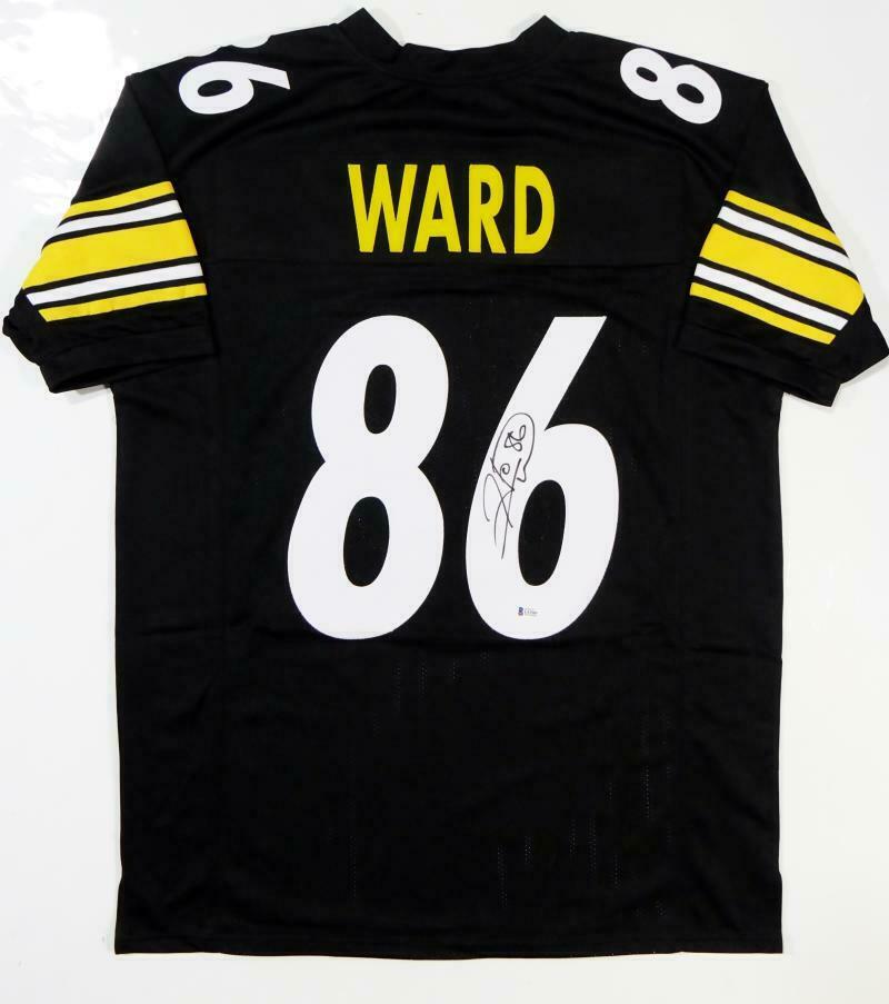 Hines Ward Autographed Black Pro Style Jersey- Beckett Witnessed *6 THIS IS NOT AN NFL JERSEY. THIS HAS NO TAGS, NO LOGOS, NO EMBLEMS. This is a hand autograph of Hines Ward on a Custom Made (non name brand) Authentic Style Jersey with stitched letters and numbers. This item has a Beckett Witness Authentication, which comes with a numbered and a matching Beckett Certificate of Authenticity. You can view this item on the Beckett Authentication website, it shows when and where the item was signed. It was signed either at a public autograph appearance or a private signing. This is a stock photo of the item. Although you may not receive this exact item, the item you receive is virtually identical and brand new in great shape. Jersey size is XL.