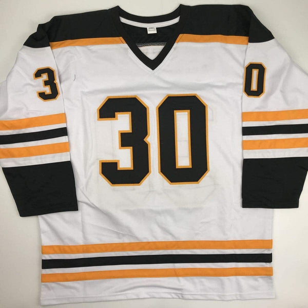Autographed/Signed GERRY CHEEVERS HOF 85 Boston White Hockey Jersey JSA COA Auto This is a custom jersey and was not manufactured by or in any manner associated with any professional sports league or manufacturer. This custom jersey carries no professional sports league designation. The item is intended to be an autographed collectible. Reference of team in the title is to allow the purchaser a point of association. The custom jersey displays the name, number and authenticated signature of the player. This item in no way is affiliated with or connected to any professional sports organization. The autograph, as always is guaranteed to be authentic and has been certified as authentic by a third-party, trusted authenticator. Size is XL unless otherwise noted.
