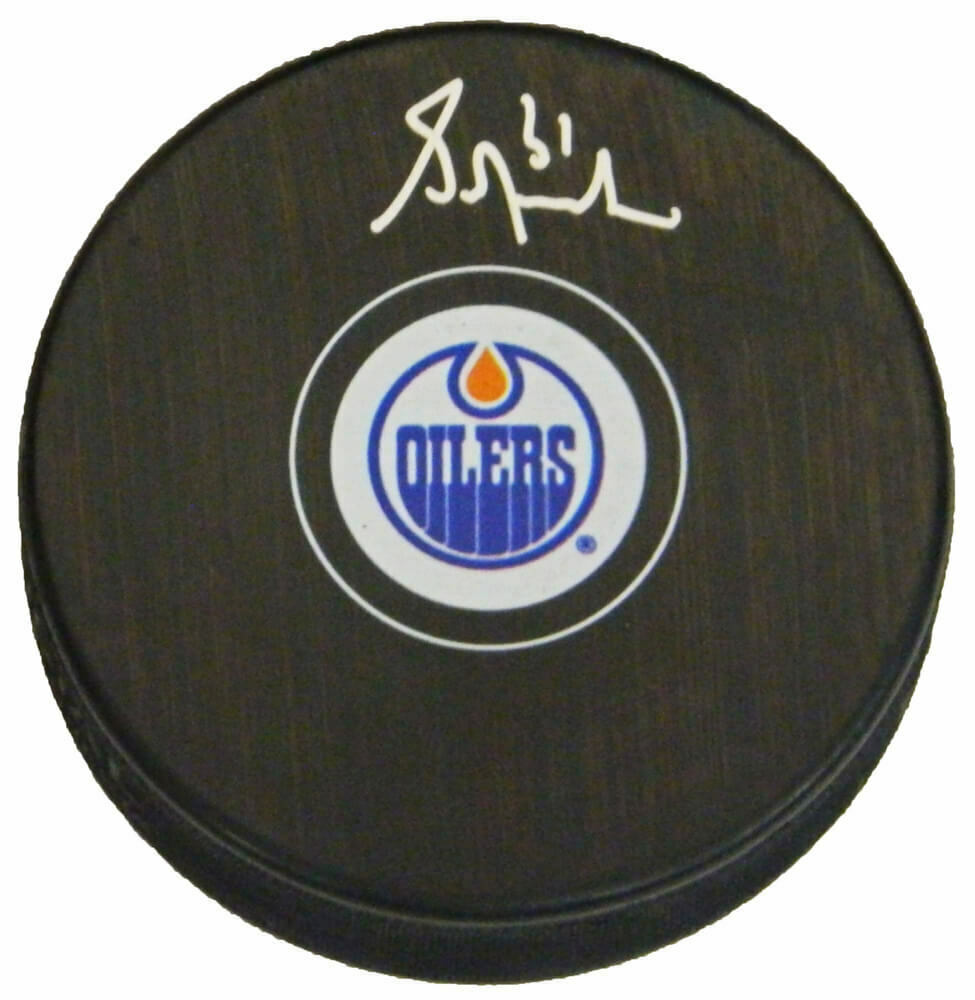 Grant Fuhr signed Edmonton Oilers logo hockey puck. Item comes with a Schwartz Sports Memorabilia tamper-proof numbered hologram and Certificate of Authenticity which can be verified online.