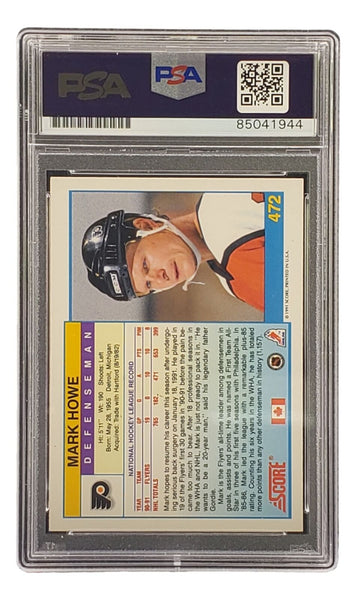 Mark Howe Signed 1991 Score #472 Philadelphia Flyers Hockey Card PSA/DNA