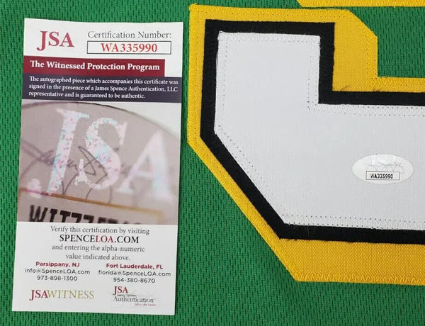 This autographed jersey has been personally hand-signed by Mike Modano of the Minnesota North Stars.This autograph is certified by James Spence Authentication's (JSA) Witnessed Protection Program. That means that a JSA representative was present when this item was signed. It comes with the numbered hologram and matching Certificate of Authenticity.Custom on-field style jerseys are a more affordable option for autograph seekers. These jerseys do not have any brand name or tags and are made in the Philippines. They feature stitched on names and numbers and are made to look very similar to the on-field jerseys that the players wear. These custom jerseys are very commonly used in the memorabilia industry.