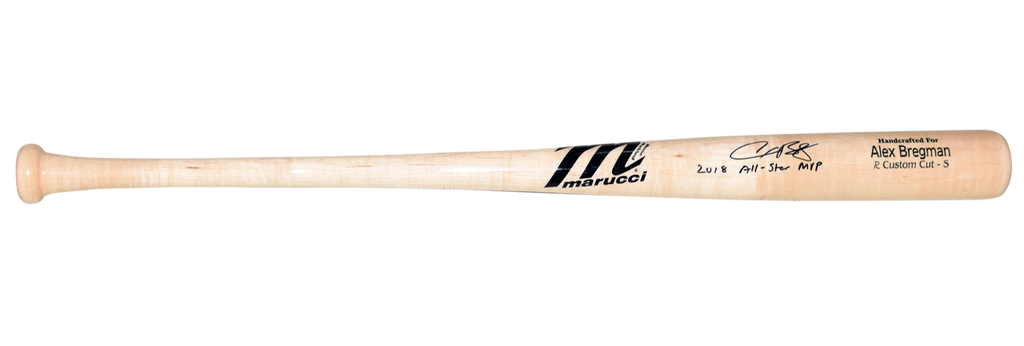 Alex Bregman, All-Star infielder for the Houston Astros, has hand signed this Marucci game model bat at a private signing. He included the inscription "2018 All-Star MVP". This bat is just like the one he uses in games! This item comes with a certificate of authenticity (COA) from Beckett Authentication Services and was signed in the presence of one of their representatives. You will receive a serial-numbered COA along with a matching serial-numbered sticker on the bat. The authenticity can be verified online by entering the serial number.Item pictured may not be the exact item you will receive. It will be similar quality, and we guarantee your satisfaction.