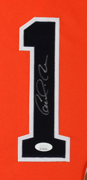 Custom frame measures approximately 35" x 43" in size and features a jersey which has been hand-signed in silver paint pen by Carlos Correa. The lot / autograph(s) includes an official James Spence Authentication (JSA) hologram for authenticity purposes.Authentication: JSA Hologram