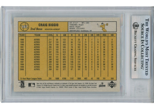 The number in the listing title is just an inventory sku for our records and is not the authentication number. The item pictured is the exact image you will receive, please see photos for condition. This is an Houston Astros 2001 Upper Deck Vintage #167 Slabbed Trading Card that was personally autographed by Craig Biggio. Includes a certificate of authenticity from Beckett Authentication Services (BAS) and Denver Autographs. FREE SHIPPING within the USA on orders over $10!