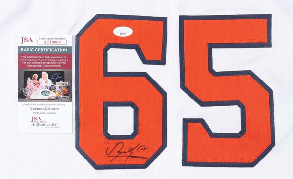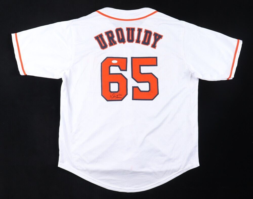Custom on-field style jersey. Everything sewn on, size XL. Hand-signed by Jose Urquidy.The autograph(s) includes an official James Spence Authentication (JSA) hologram and matching COA for authenticity purposes.Authentication: JSA COACustom on-field style jerseys are a more affordable option for autograph seekers. These jerseys do not have any brand name or tags and are made in the Philippines. They feature stitched on names and numbers and are made to look very similar to the on-field jerseys that the players wear. These custom jerseys are very commonly used in the memorabilia industry.