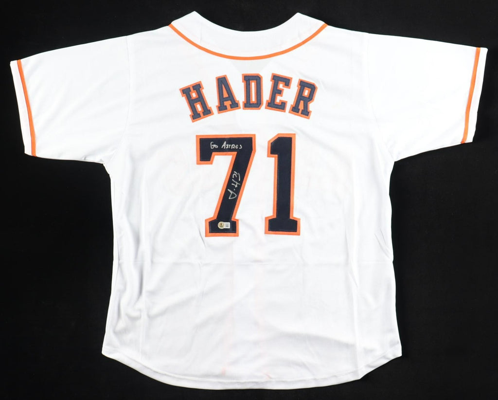 Custom jersey with everything sewn on, size XL. Hand-signed and inscribed "Haderade" by Josh Hader.The autograph includes an official Beckett Authentication Services serially numbered hologram and QR Code card for authenticity purposes. The signing of this item was witnessed by Beckett.Authentication: Beckett Hologram with Scannable QR Code card