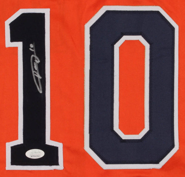 Custom on-field style jersey. Everything is sewn on, size XL. Hand-signed in silver paint pen by Yuli Gurriel. The lot / autograph(s) includes an official James Spence Authentication (JSA) hologram and matching COA for authenticity purposes.Authentication: JSA COA