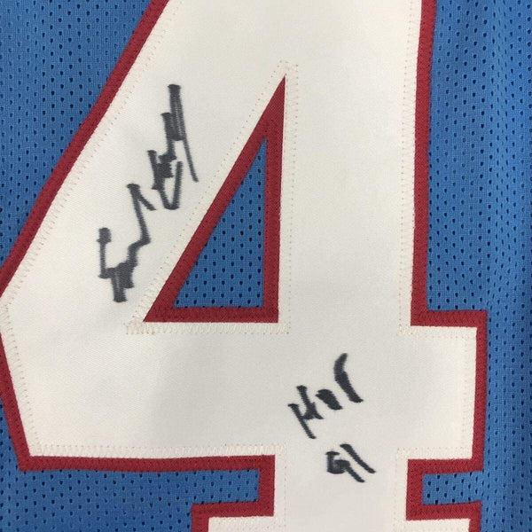 Autographed/Signed EARL CAMPBELL HOF 91 Houston Blue Stat Jersey JSA COA Auto This is a custom jersey and was not manufactured by or in any manner associated with any professional sports league or manufacturer. This custom jersey carries no professional sports league designation. The item is intended to be an autographed collectible. Reference of team in the title is to allow the purchaser a point of association. The custom jersey displays the name, number and authenticated signature of the player. This item in no way is affiliated with or connected to any professional sports organization. The autograph, as always is guaranteed to be authentic and has been certified as authentic by a third-party, trusted authenticator. Size is XL unless otherwise noted.