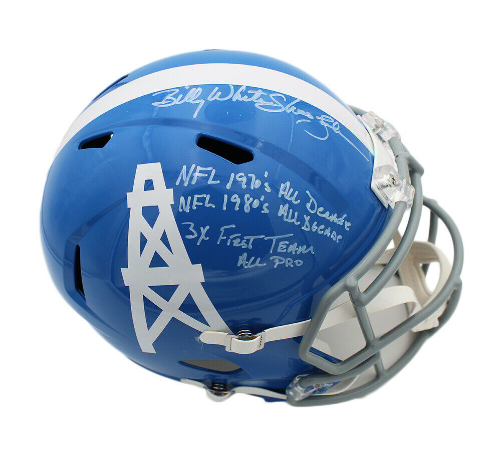 Billy Signed Houston Oilers Speed Full Size TB Blue NFL Helmet w/70/80sAD,NFL