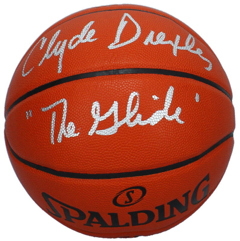Clyde Drexler Autographed/Inscribed "The Glide" Spalding NBA Game Ball Series Indoor/Outdoor Basketball Beckett Witnessed Includes hologram! Drexler's signature is guaranteed authentic through the Beckett hologram system. MONEY BACK GUARANTEE! If for any reason you are not completely satisfied with the quality or authenticity of your purchase, we will gladly give you a full refund or exchange, whichever you prefer up to 30 days after purchase. Please feel free to e-mail us with any questions. Thank you. Authenticator Pre-Certified Authenticator: Beckett Authenticated History of item: Clyde Drexler has signed this item in the presence of a representative from Beckett. Describe how you came to possess this item: Super Sports Center is a fully authorized dealer for Upper Deck Authenticated as well as Mounted Memories and Steiner Sports. Other information about you and / or the item: Super Sports Center strives to deliver the most authentic in sports memorabilia from trusted companies like Mounted Memories, Steiner Sports and Upper Deck Authenticated. If it exists, we can find it for you!