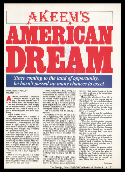 Hakeen Olajuwon Autographed 8x11 Magazine Page Photo Rockets Beckett QR #BS36788