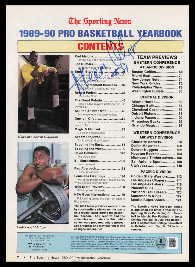 This is an 8x11 Magazine Page Photo that has been hand signed by Hakeen Olajuwon. This item has been certified authentic by Beckett Authentication (BAS) and comes with their tamper-proof QR Code hologram.
