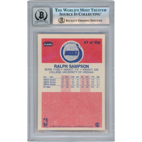 The number in the listing title is just an inventory sku for our records and is not the authentication number. The item pictured is the exact item you will receive, please see photos for condition. This is a Houston Rockets Slabbed 1986 Fleer #97 Trading Card that was personally autographed by Ralph Sampson. Includes a certificate of authenticity from Beckett Authentication Services (BAS) and Denver Autographs.FREE SHIPPING within the USA on orders over $10!