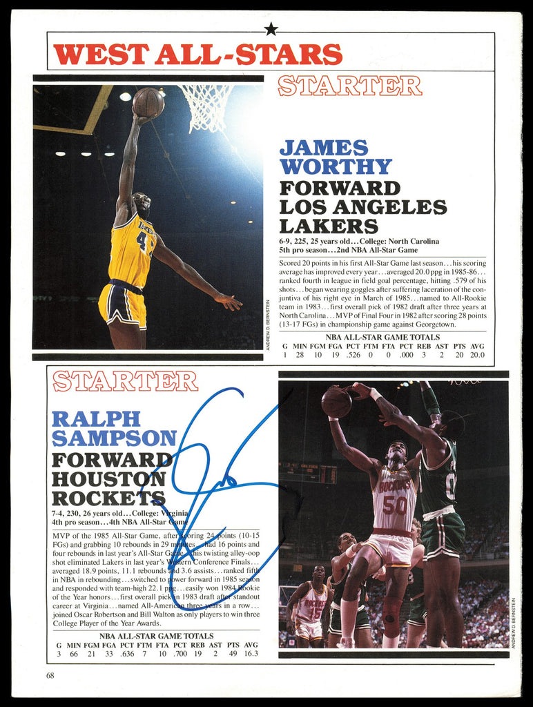 This is an 8.5x11 Magazine Page Photo that has been hand signed by Ralph Sampson. This item is guaranteed to pass any third party authentication company including Beckett, PSA/DNA, & JSA authentication.